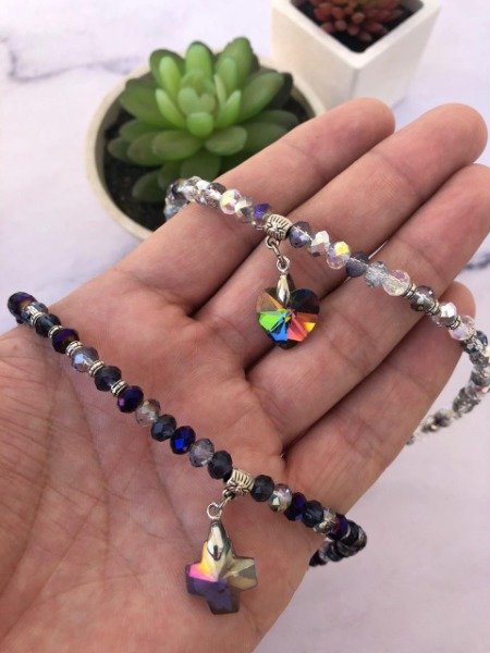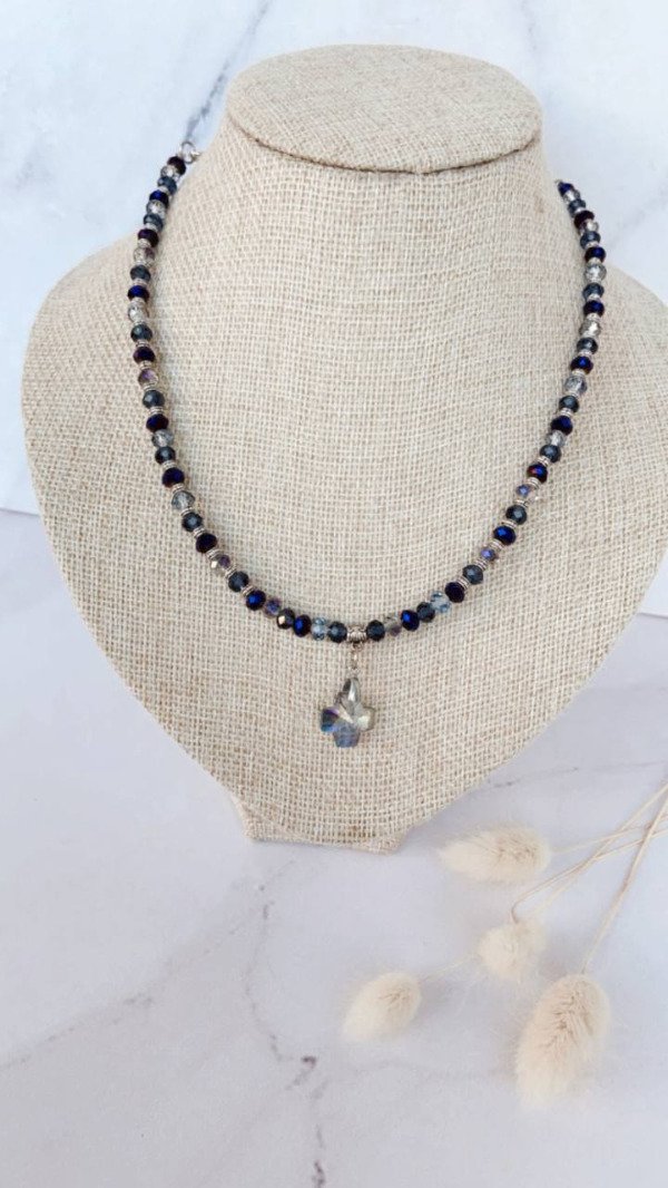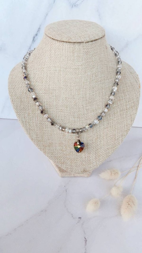 Collar (ca277) de cristales numero 6, separadores niquelados y dije central cristal chico