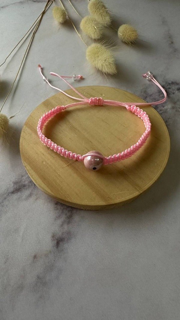 Pulsera de hilo chino, fimo, mostacillas y dije de cerámica