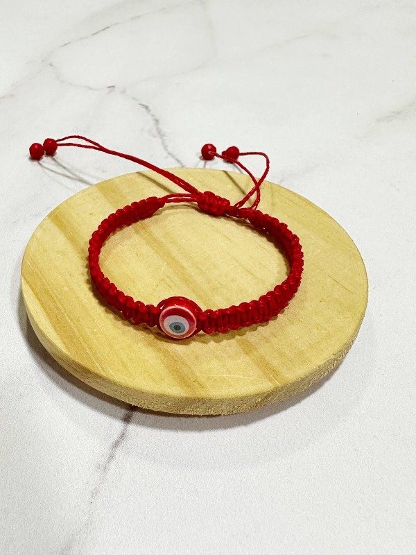 Pulsera de hilo encerado, cristales y dije de cerámica