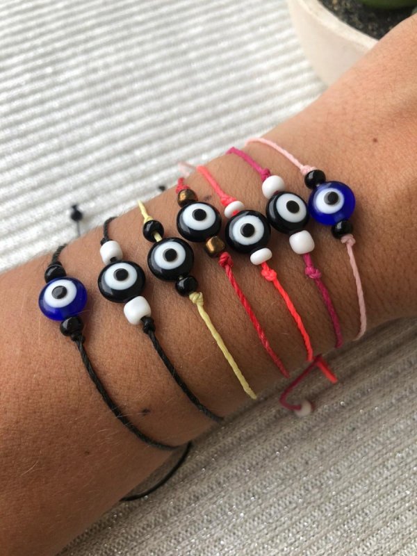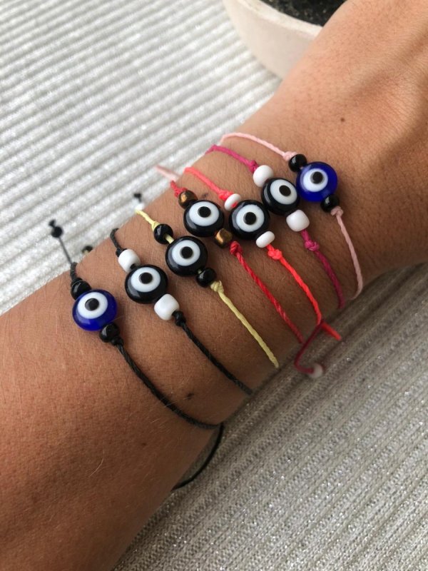 Pulsera de hilo con dije central de ojo de plástico