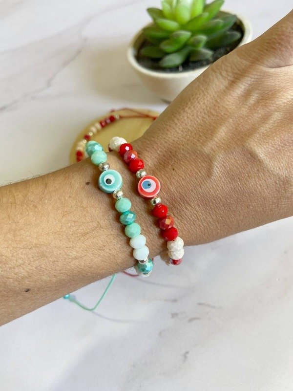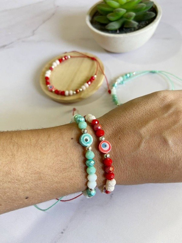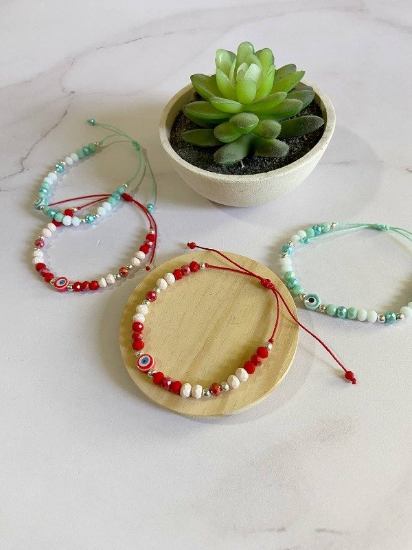 Pulsera de hilo encerado con cristales numero 6 y dije central de cerámica