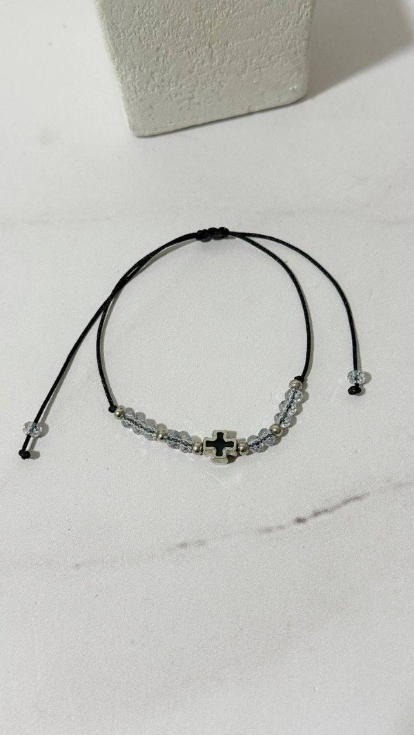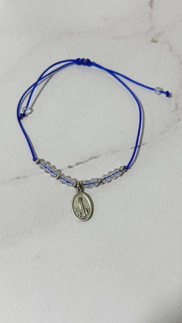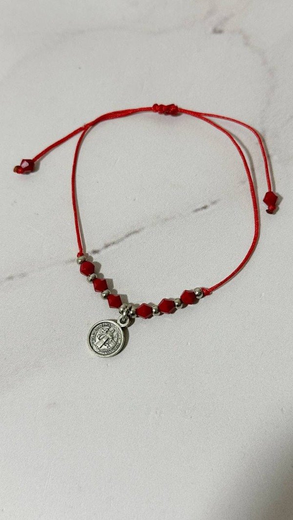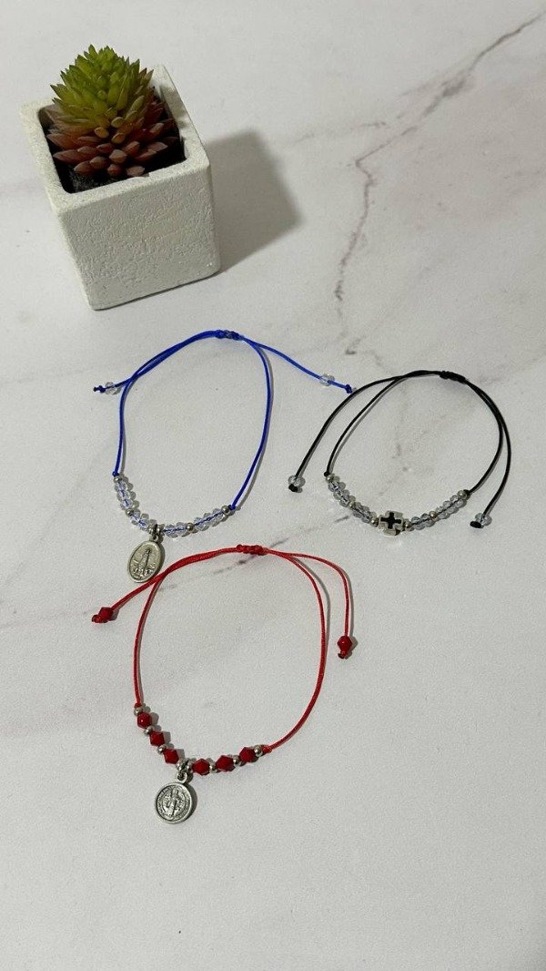 Pulsera de hilo chino, cristales y dije de santitos