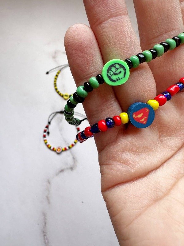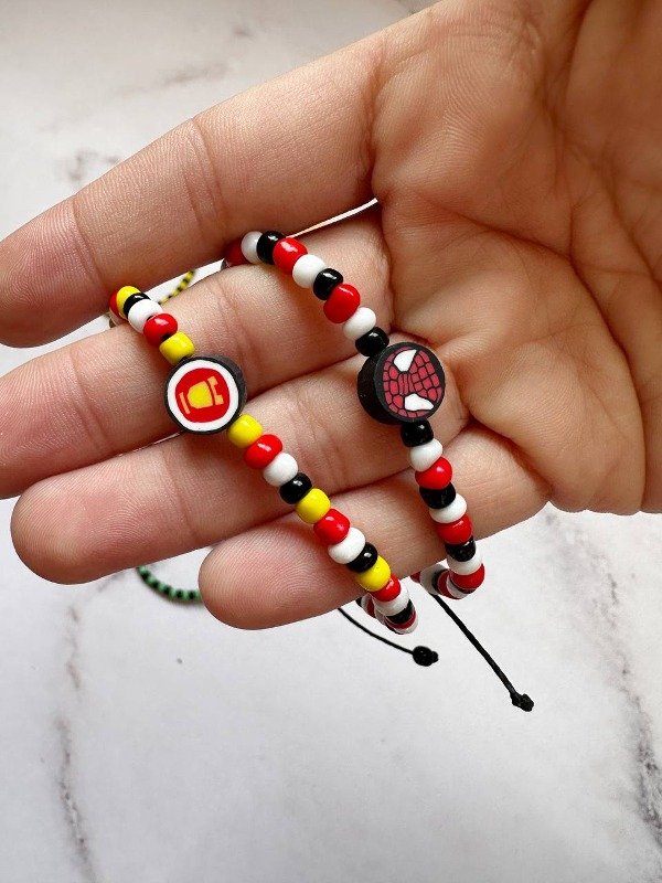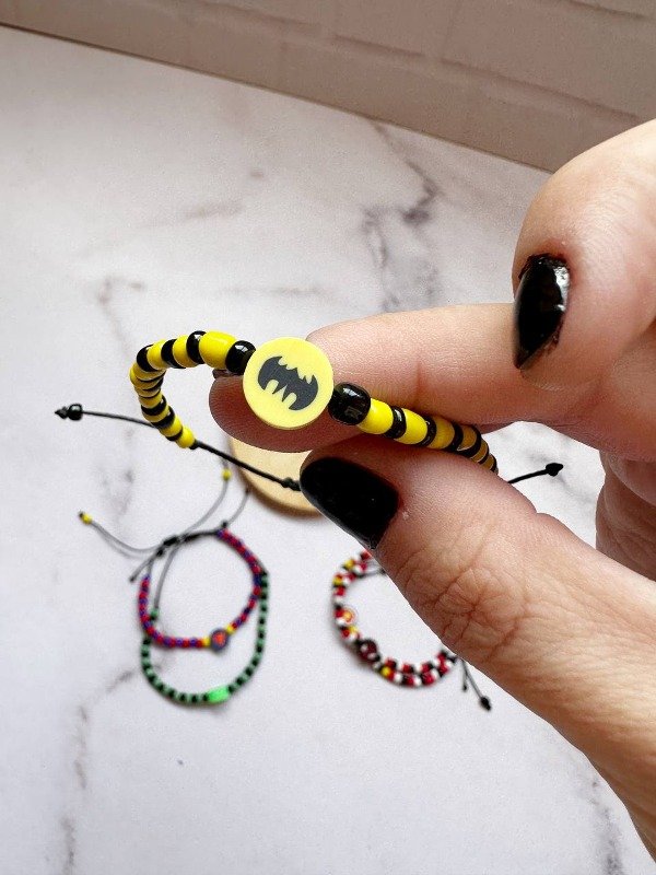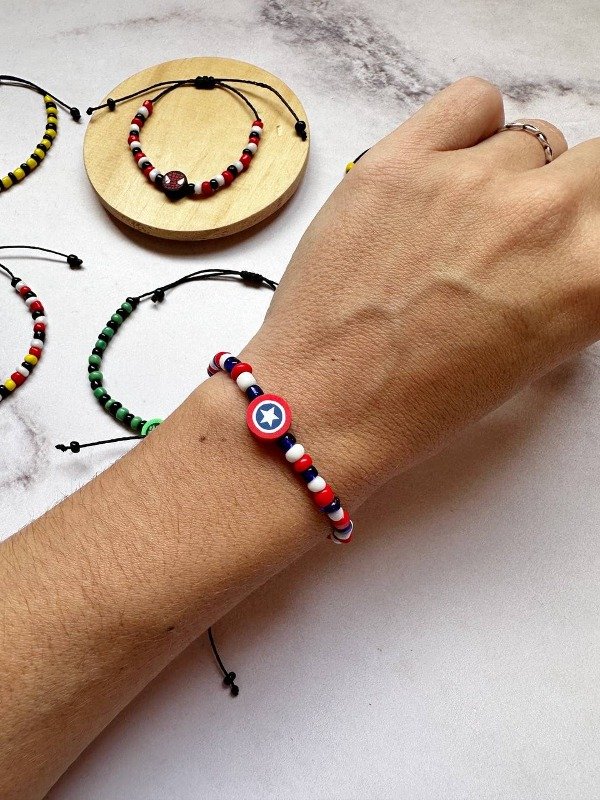 Pulsera de hilo encerado, mostacillas y dije de fimo